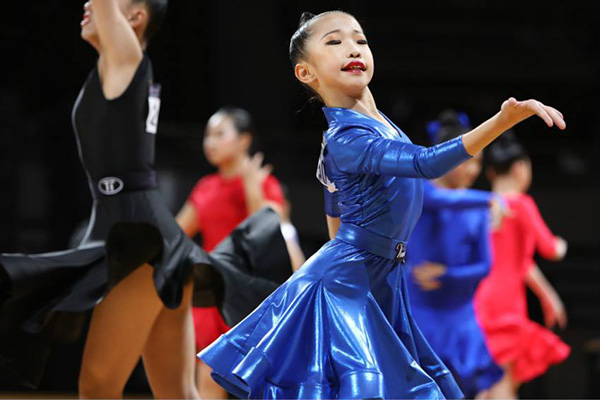 Young dancers perform at the 2019 Blackpool Dance Festival (China) in Shanghai Baoshan Sports Center on Sunday. [Photo provided to China Daily]