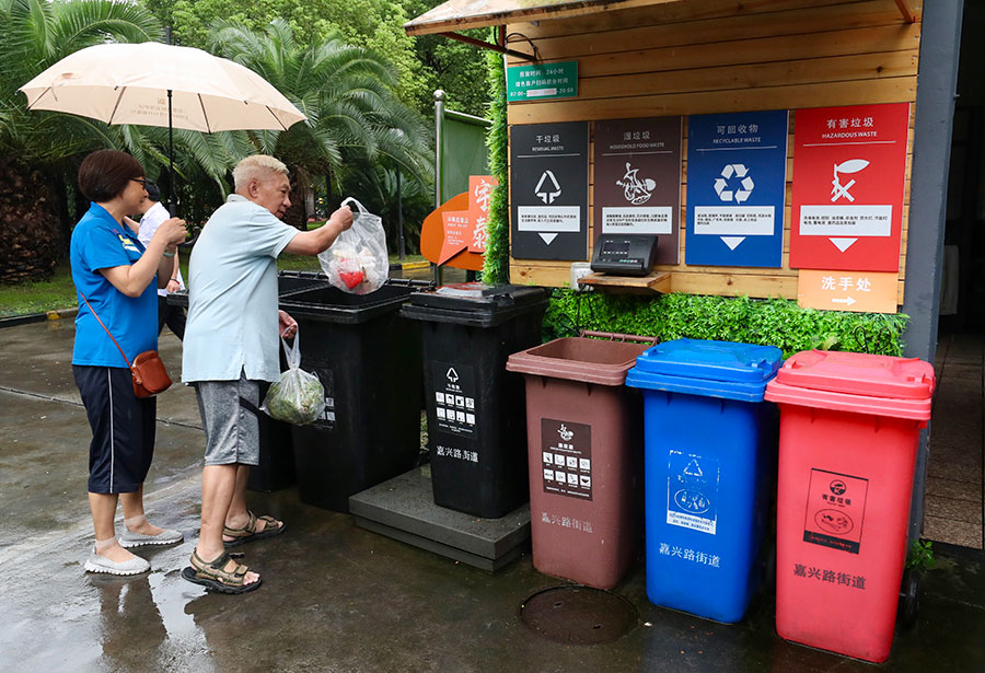 As China's first city to enforce strict regulations on garbage sorting and recycling, the municipality stipulated that residents should classify garbage into four categories: recyclables, kitchen waste, hazardous waste and residual waste.