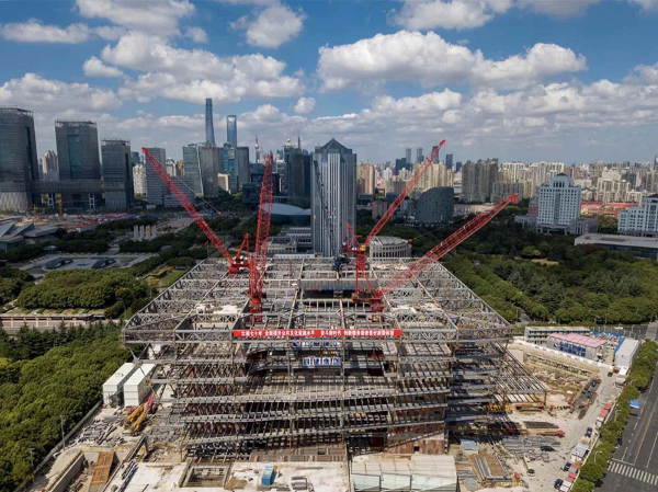 The main steel-framed structure of the Shanghai Library East Branch was completed on Sep 20.