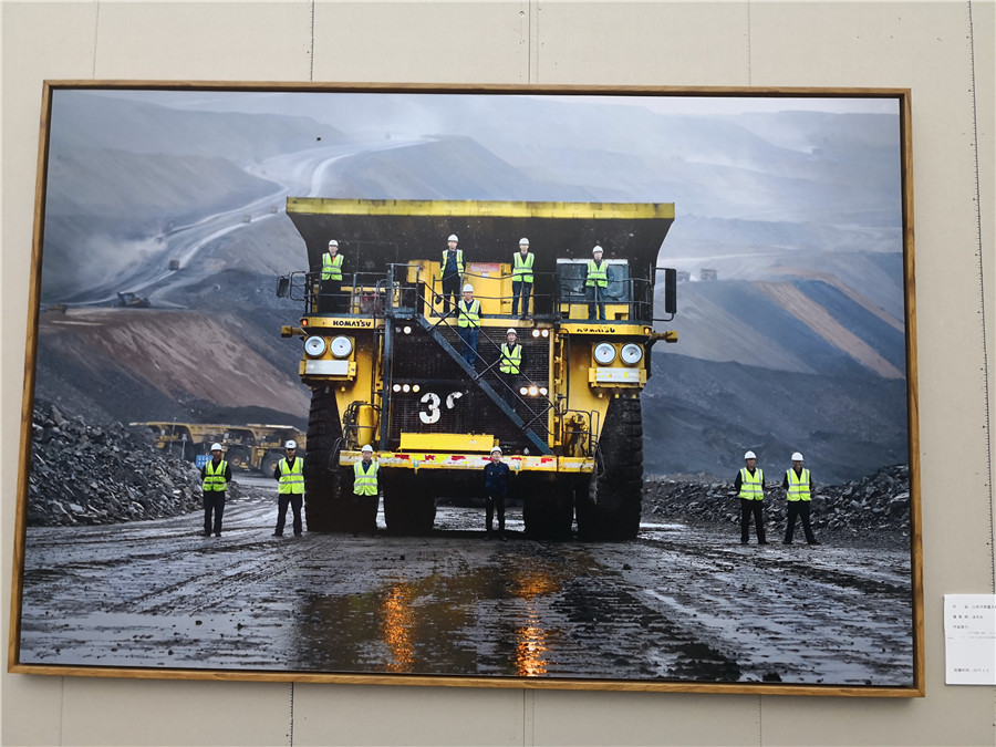 Mine workers and a mining dump truck are pictured in one of the 70 group photos shown in a feature exhibition to mark the PRC's 70th anniversary at the 19th Pingyao International Photography Festival, on Sept 19, 2019. [Photo by Sun Ruisheng/chinadaily.com.cn]