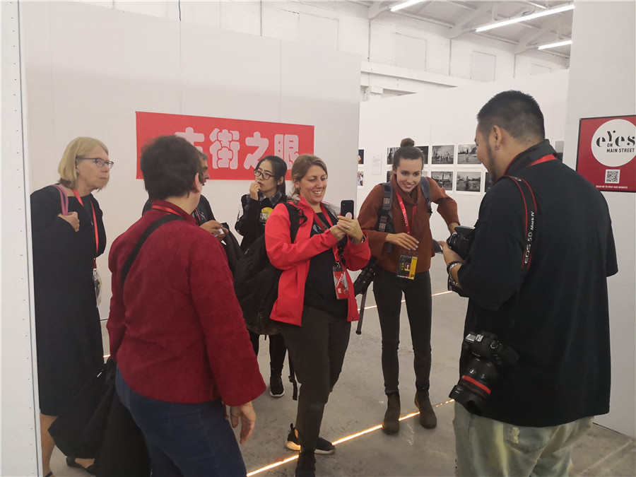A foreign visitor takes a photo with her smart phone at the 19th Pingyao International Photography Festival, on Sept 19, 2019. [Photo by Sun Ruisheng/chinadaily.com.cn]