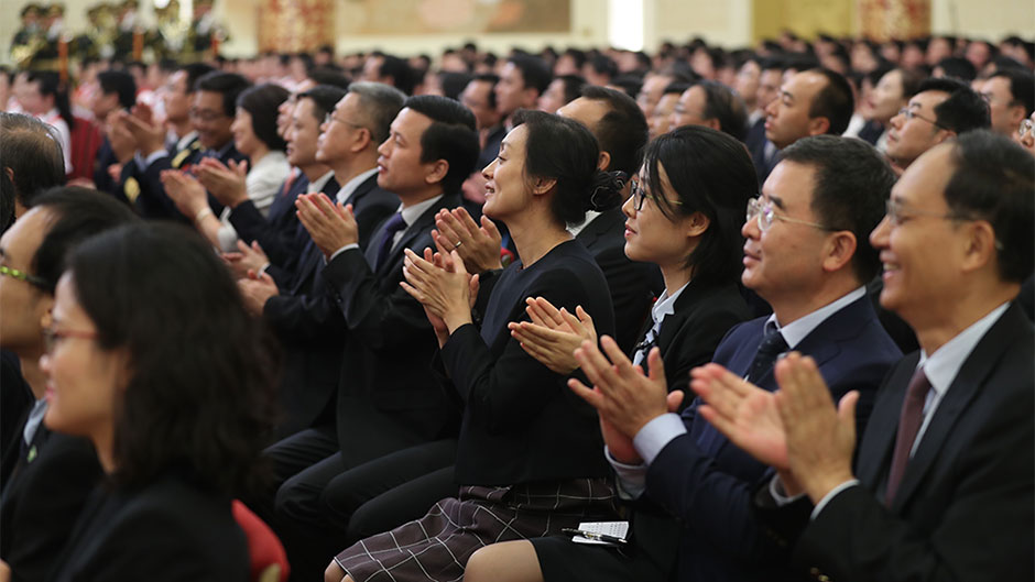 Audiences applaud during a ceremony held to grant national medals and honorary titles of the People's Republic of China at the Great Hall of the People in Beijing on Sept 29, 2019. [Photo/Xinhua]