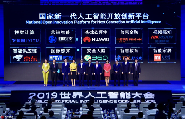 China's top 10 open innovation platforms for next-generation AI has been released by the Science and Technology Ministry at the 2019 World Artificial Intelligence Conference in Shanghai.