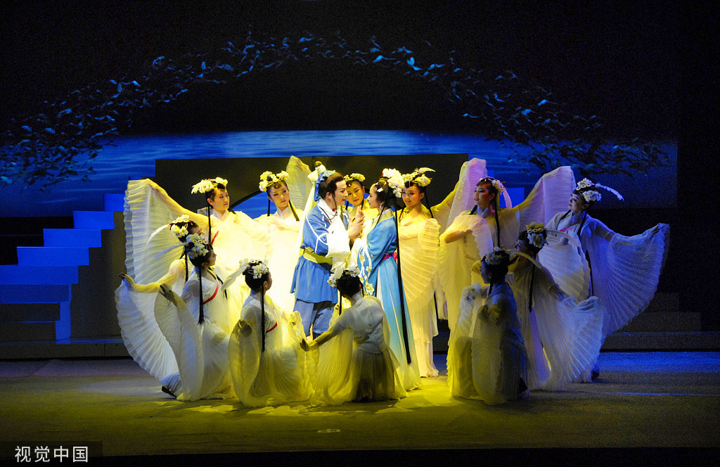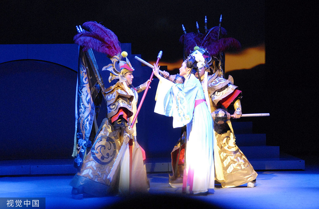 Huangmei opera, which originated in Huangmei in Hubei province, expanded in Anqing of Anhui province. It’s considered one of China’s five major operas together with Peking opera, Yueju opera, Pingju opera and Yuju opera.