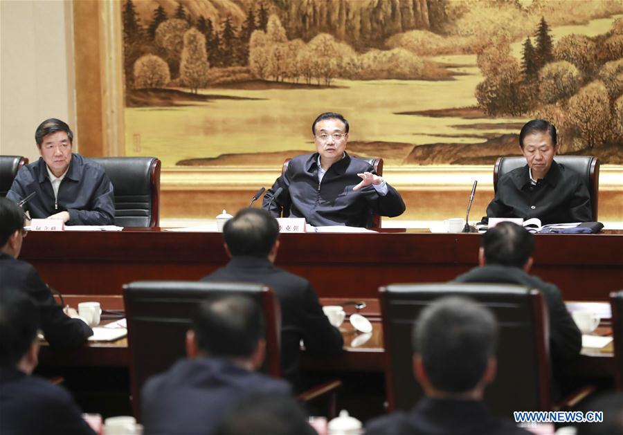 Chinese Premier Li Keqiang, also a member of the Standing Committee of the Political Bureau of the Communist Party of China Central Committee, chairs a symposium attended by heads of some provincial governments to analyze the current economic situation in Xi'an, capital of Northwest China's Shaanxi province, Oct 14, 2019. [Photo/Xinhua]