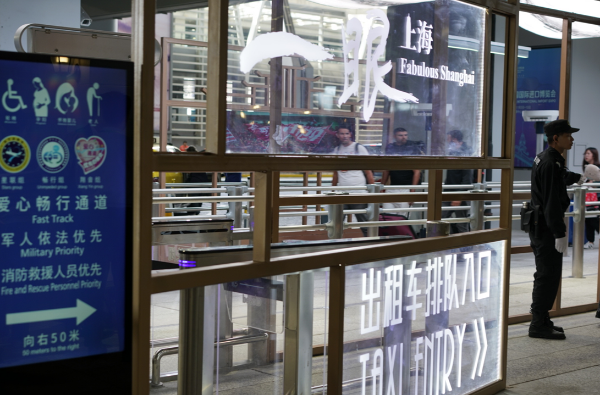 The Fabulous Shanghai exhibition in the taxi pick-up area in Shanghai Pudong International Airport. [Photo by He Qi /chinadaily.com.cn]