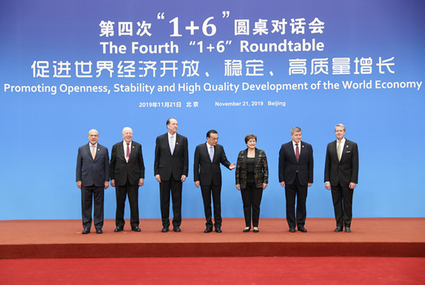 Premier Li Keqiang held the fourth “1+6” Roundtable with leaders of six major international economic and financial institutions in Beijing on Nov 21.