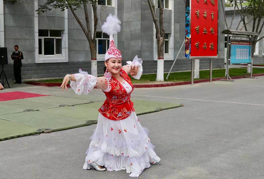 Although she was wearing a protective suit, Bahargul still managed to show the essence of her traditional Uygur and Kazak dances with lively gestures.