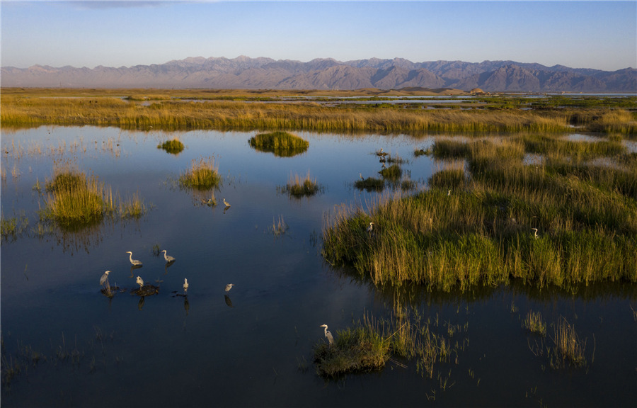 Migratory birds are spotted at the Sand Lake scenic area in Shizuishan, Northwest China's Ningxia Hui autonomous region. From March to October, the region becomes a sanctuary for many species such as sandpipers, herons and pochards. The 9th International Bird Watching Festival will begin during the Labor Day holiday. [Photo/Xinhua]