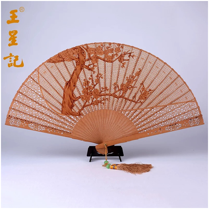 A Wang Xingji fan made of red sandalwood. Wang Xingji fans are a national-level intangible cultural heritage from East China’s Hangzhou. [Photo/Taobao.com]