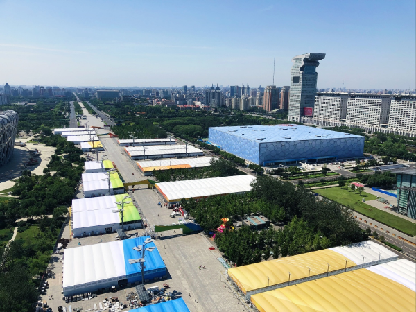 Temporary outdoor pavilions and other supporting facilities have been set up in Beijing, Aug 18, 2020. [Photo provided by the Publicity Department of the CPC Beijing Municipal Committee]