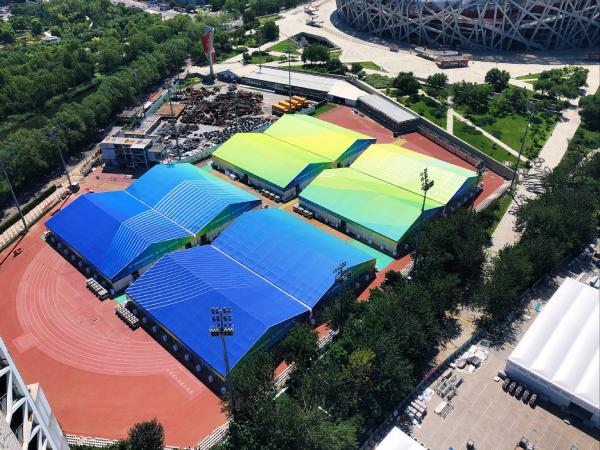 Temporary outdoor pavilions and other supporting facilities have been set up in Beijing, Aug 18, 2020. [Photo provided by the Publicity Department of the CPC Beijing Municipal Committee]