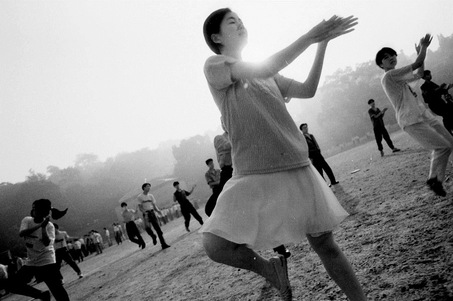 Students practice group dance on the playground, preparing for the autumn arts festival in Wuhan University. [Photo by Wang Jingchun/Ultimate Vision]