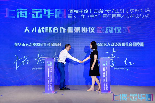 An agreement on talent exchanges was signed between the human resources and social security bureaus of Jinhua, Zhejiang province and Shanghai's Yangpu district.