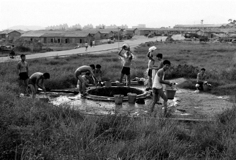 Engineering troops for capital construction cooled off with water from a well in 1982. [Photo by Zhou Shunbin/cpanet.org.cn]