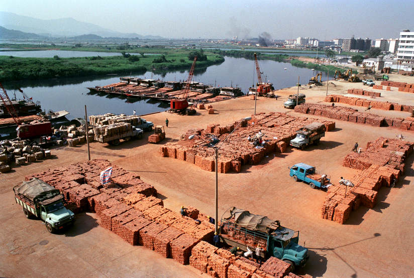 Shenzhen's Shangbu wharf is pictured in 1989. Most building materials in the early phases of construction were transported through the Shenzhen River here. [Photo by Zhou Shunbin/cpanet.org.cn]