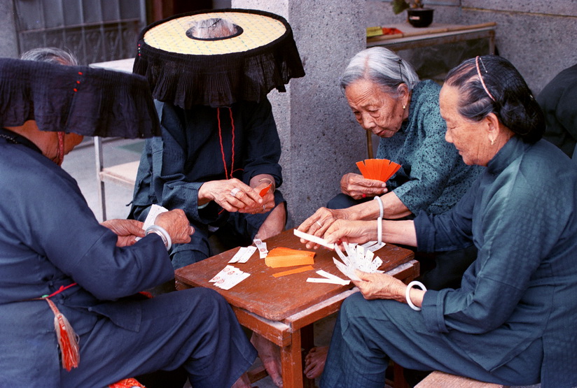 Native Hakka women play games at home. [Photo by Zhou Shunbin/cpanet.org.cn]