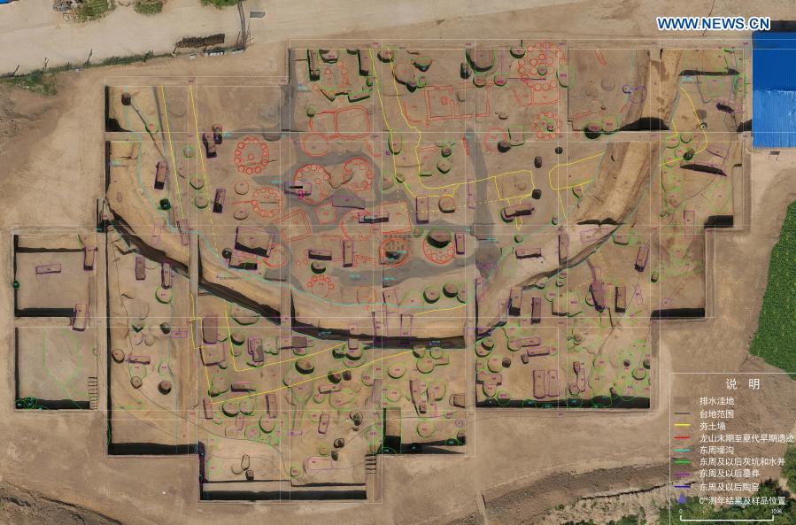 This undated image shows the layout of the Shizhuang Site in Huaiyang district of Zhoukou, Central China's Henan province. (Henan Provincial Institute of Cultural Heritage and Archaeology/Handout via Xinhua)