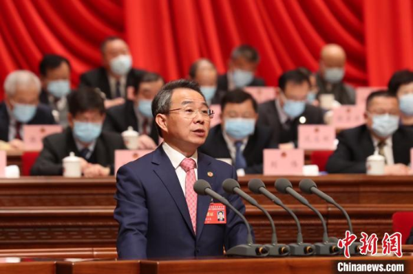 Dong Yunhu, chairman of the 13th CPPCC Shanghai committee, presented a work report of the committee in the past year and a plan for the future.