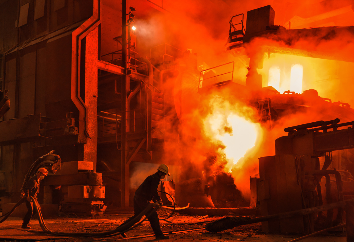Employees carry out maintenance work at a steel production facility in Maanshan, Anhui province, in November. [Photo by LUO JISHENG/FOR CHINA DAILY]