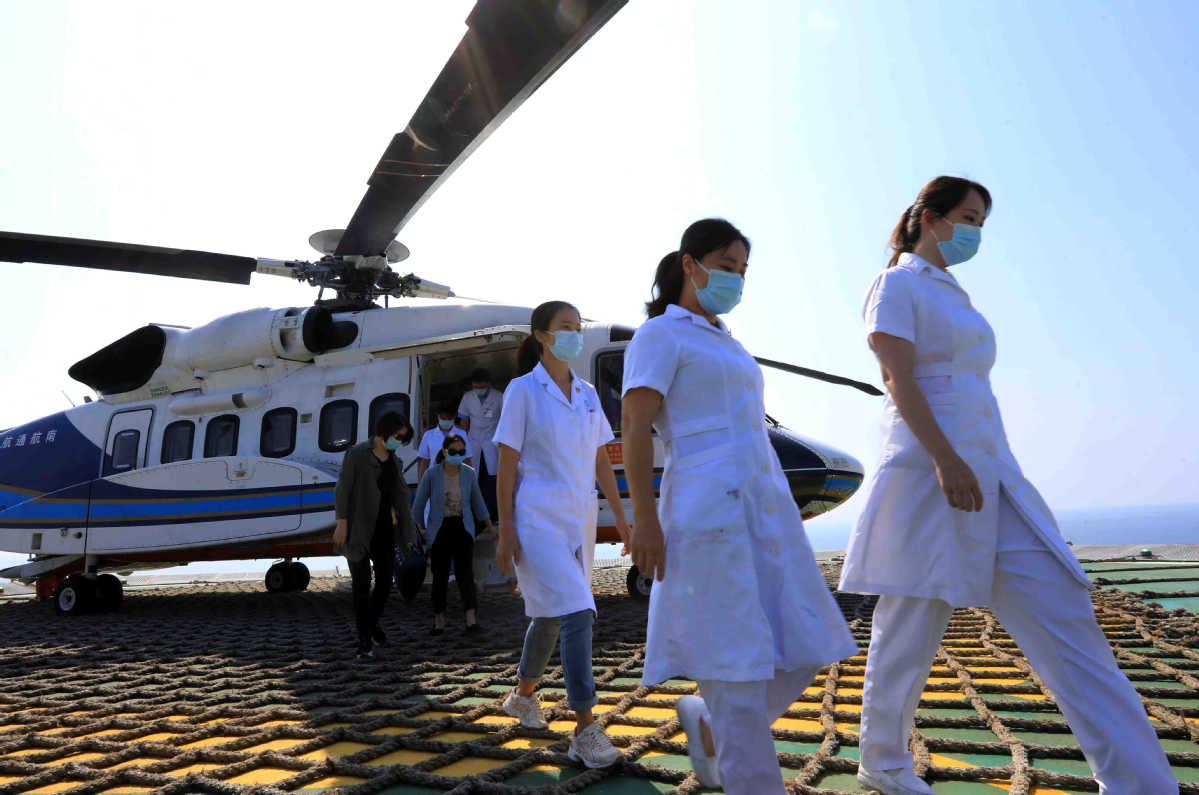 127 offshore workers were vaccinated against COVID-19 when a helicopter carrying medical workers flew to their rigs in the gas fields of the Zhuhai special economic zone in Guangdong province on Saturday. [Photo by Cheng Lin/ for chinadaily.com.cn]
