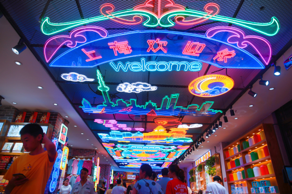 Neon lights are seen at the department store in Shanghai, July 3, 2021. [Photo/IC]