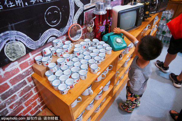 A boy stands in front of a shelf displaying enameled cups in Shanghai, July 3, 2021. [Photo/Sipa]