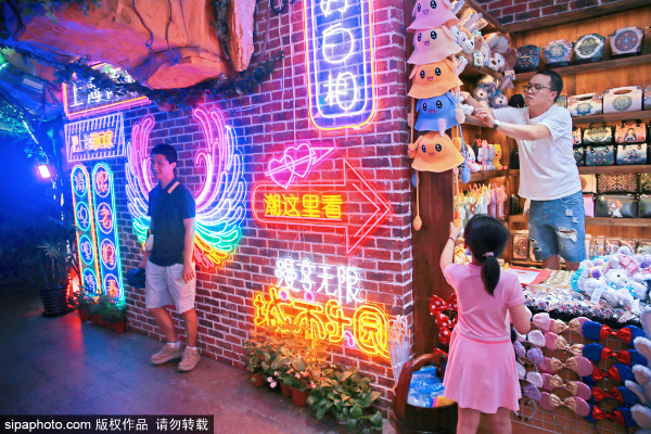 A man stands in front of neon lights in Shanghai, July 3, 2021. [Photo/Sipa]