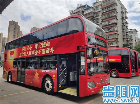 Guiyang bus line No 1 operates new double-decker buses with special designs and slogans, to celebrate the 100th anniversary of the founding of the CPC. [Photo/Guiyang news network]