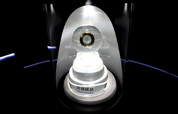 Photo shows the lunar samples at the Shanghai Astronomy Museum in East China's Shanghai, July 17, 2021. [Photo/Xinhua]