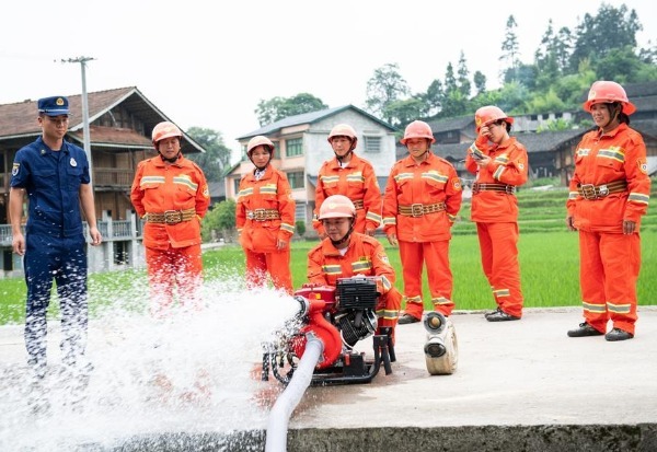 Since March, the women' volunteer fire brigade has given more than 40 fire safety knowledge presentations and conducted 200 fire inspections and 15 fire drills. They teach villagers firefighting and fire prevention skills, and welcome more additions to the team.