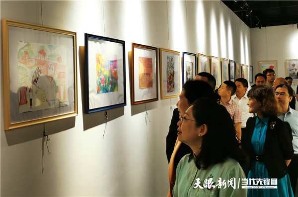 Visitors to the exhibition enjoy paintings and drawings created by teenagers from China and ASEAN countries. [Photo/ddcpc website]