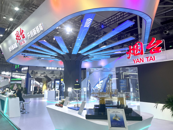 The model of Blue Whale 1, the ultra-deep-water semisubmersible drilling rig, was also displayed. Developed by CIMC Raffles, Blue Whale 1 succeeded in collecting samples of combustible ice in the South China Sea in July 2017.
