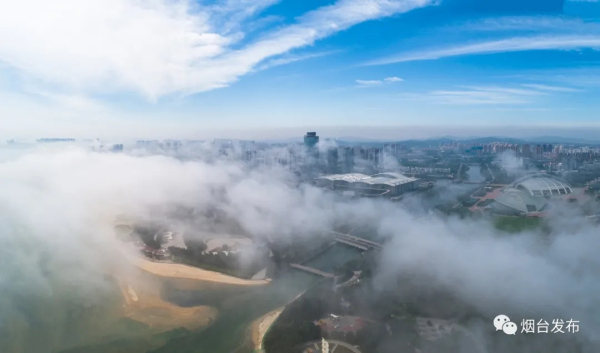 Yantai is gradually blanketed by a thick layer of fog on July 22, transforming the coastal city into a dreamy wonderland. [Photo/WeChat Account: yantaifabu]