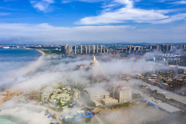 Yantai, a coastal city in East China's Shandong province, was blanketed by a thick layer of advection fog on July 22, turning the port city into a dreamlike fairyland.