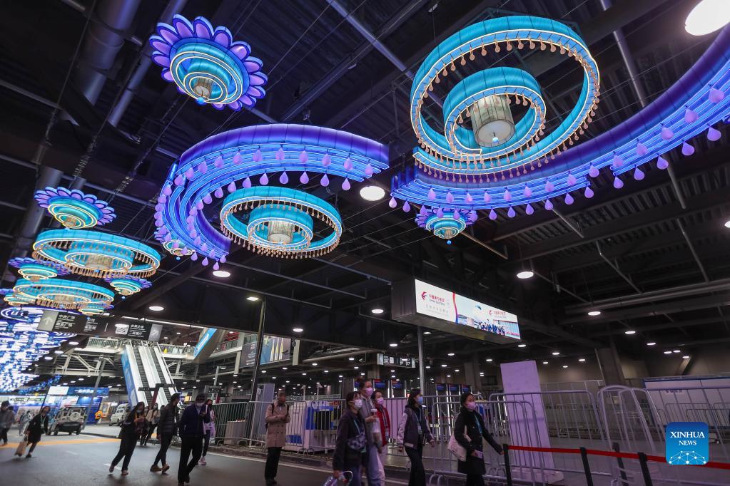 Photo taken on Nov 9, 2021 shows lanterns at the National Exhibition and Convention Center (Shanghai), the main venue for the 4th China International Import Expo (CIIE), in Shanghai. [Photo/Xinhua]