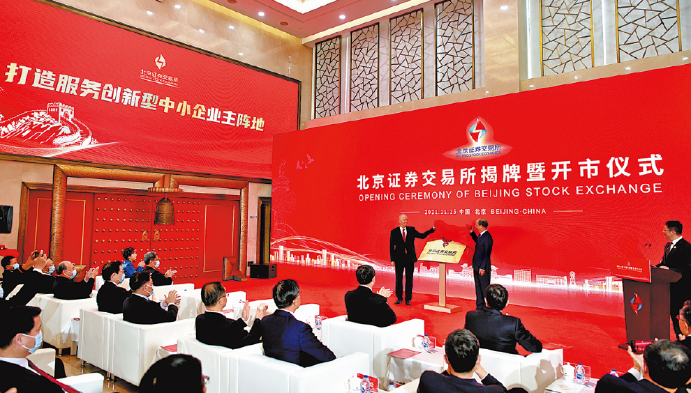 The inauguration of the BSE marks another major step in the high-quality development in China's capital market, said Yi Huiman, chairman of the China Securities Regulatory Commission, at the opening ceremony for the new exchange. Signaling a new start for China's inclusive financial services, the BSE should coordinate its development with other exchanges in China so that a wholesome multilevel capital market can be built, he said.