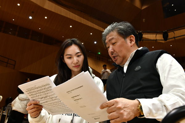 During the three-day rehearsal, he worked closely with the orchestra, consisting of students of Tianjin Juilliard School, the world's first, and so far, only branch campus of the New York performing arts school.