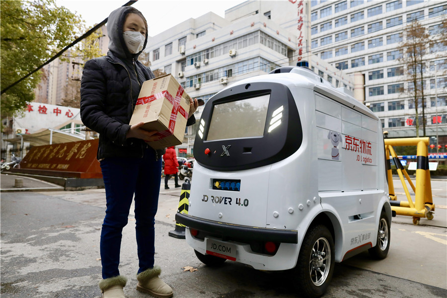 A man surnamed Wang from Pingshan district, Shenzhen, south China's Guangdong province recently placed an order on an online grocery platform after an unmanned delivery vehicle of the platform he ran into the other day aroused his interest.