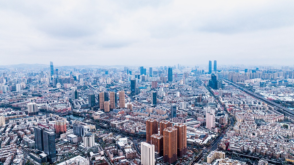 Aerial view of Kunming, capital of Southwest China’s Yunnan province after a rare snowfall on Feb 22. [Photo by Xu Jun/provided to govt.chinadaily.com.cn]