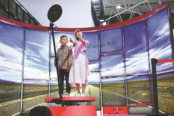 Children experience a 360-degree video-shooting technique at a big data expo in Guiyang, Guizhou province, in May. [Photo/Xinhua]