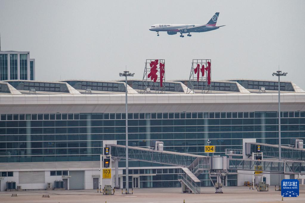 An air freighter flies over the Ezhou Huahu Airport in Ezhou, Central China's Hubei province, March 19, 2022. [Photo/Xinhua]