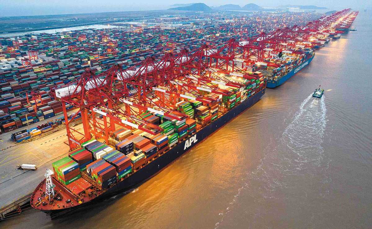 The average daily throughput of containers at the Shanghai port has been over 100,000 TUEs (twenty-foot equivalent units) since the beginning of April, a sign that the city's function as an international shipping center has been steady even though the city is hit by the current COVID-19 outbreak, Shanghai vice mayor Zhang Wei said during a news conference on Friday.