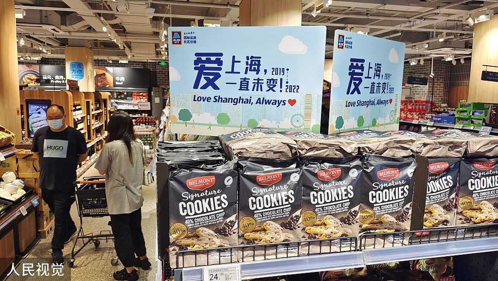 A bulletin board in an ALDI supermarket in Shanghai reads "Love Shanghai, as always", on June 9, 2022. [Photo/VCG]