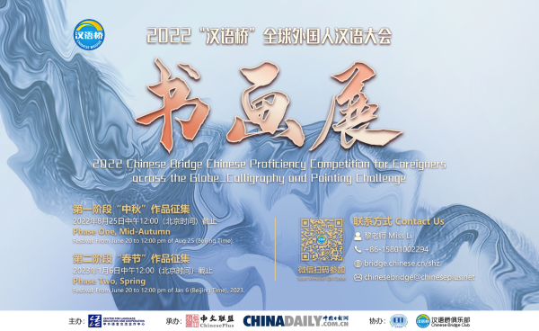 The 2022 "Chinese Bridge Chinese Proficiency Competition - Calligraphy and Painting Challenge" is calling for entries from Chinese language lovers worldwide.