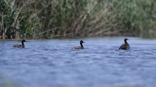 A flock of Baer's pochard, a critically endangered species of diving duck, was spotted recently in Baiyangdian Lake in Xiong'an New Area, Hebei province. [Photo by Liu Xun/For chinadaily.com.cn]