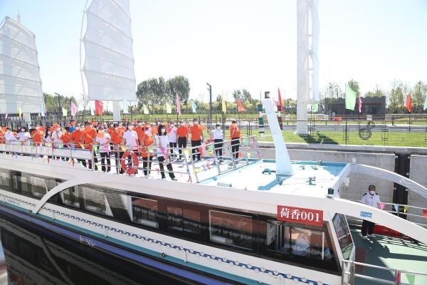 A group of passengers take a ship to experience the travel between Beijing and Hebei province over the Jinghang Grand Canal.[Photo by An Qingsong for chinadaily.com.cn]