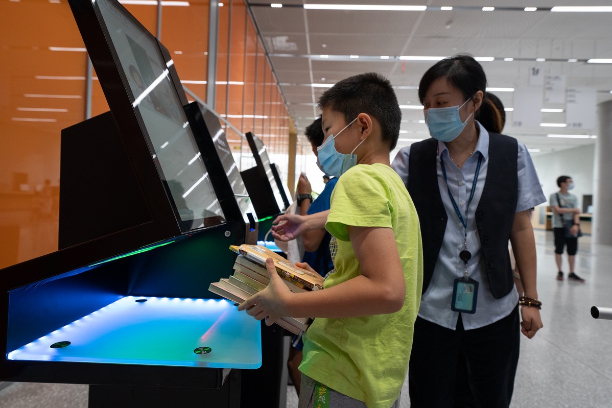 A boy returns borrowed books using a self-service station at the new Pudong branch of the Shanghai Library. [Photo by Gao Erqiang/chinadaily.com.cn]