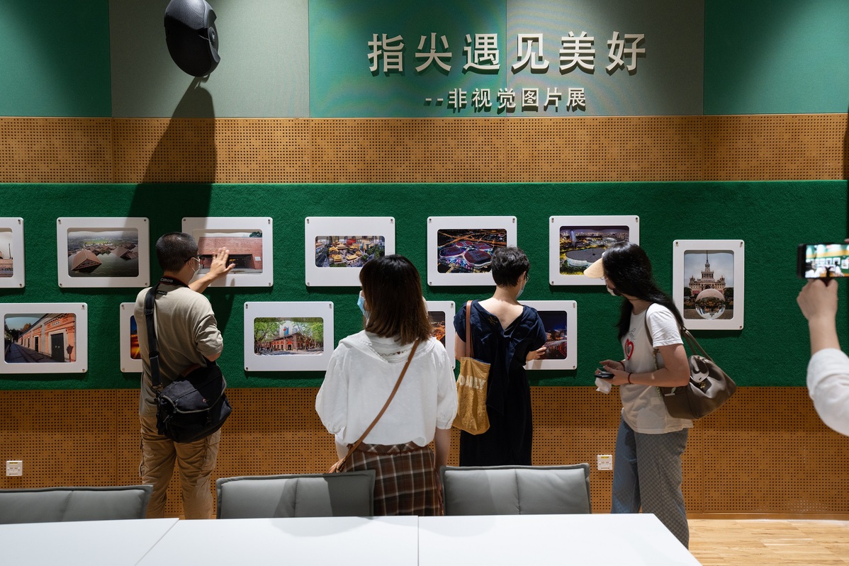 Visitors check out a photo gallery at the new Pudong branch of the Shanghai Library. [Photo by Gao Erqiang/chinadaily.com.cn]