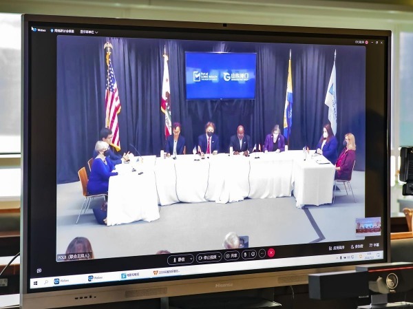 An online celebration is held to mark the 25th anniversary of sister port relationship between Port of Qingdao, a subsidiary of Shandong Port Group, and Port of Long Beach in California. [Photo provided to chinadaily.com.cn]